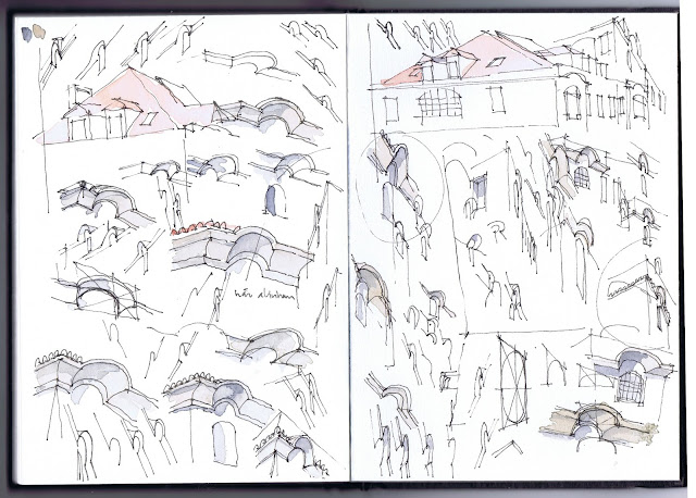 Aqueles dias que nada sai direito. Tento uma vista e acabo por fazer vários desenhos sem que nenhum seja "o tal". São apenas estudos de qualquer coisa, uns em cima dos outros, na maioria tortos e sem as proporções certas, outras vezes e apesar de não passarem de estudos, resultam bem enquanto conjunto de rabiscos amontoados. Pelo menos para mim... Sinto-me satisfeito no meio deste caos.
